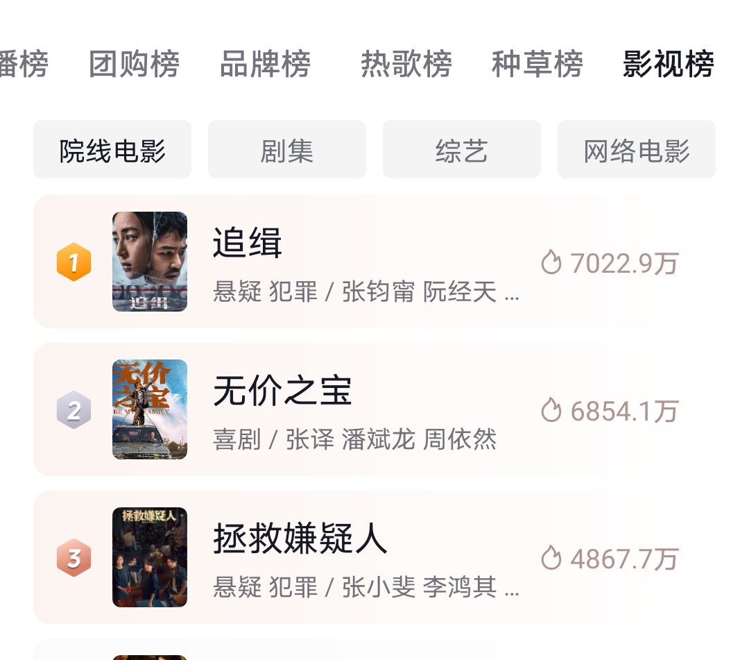 我和在映的其他几部比啊,榜单热度 |