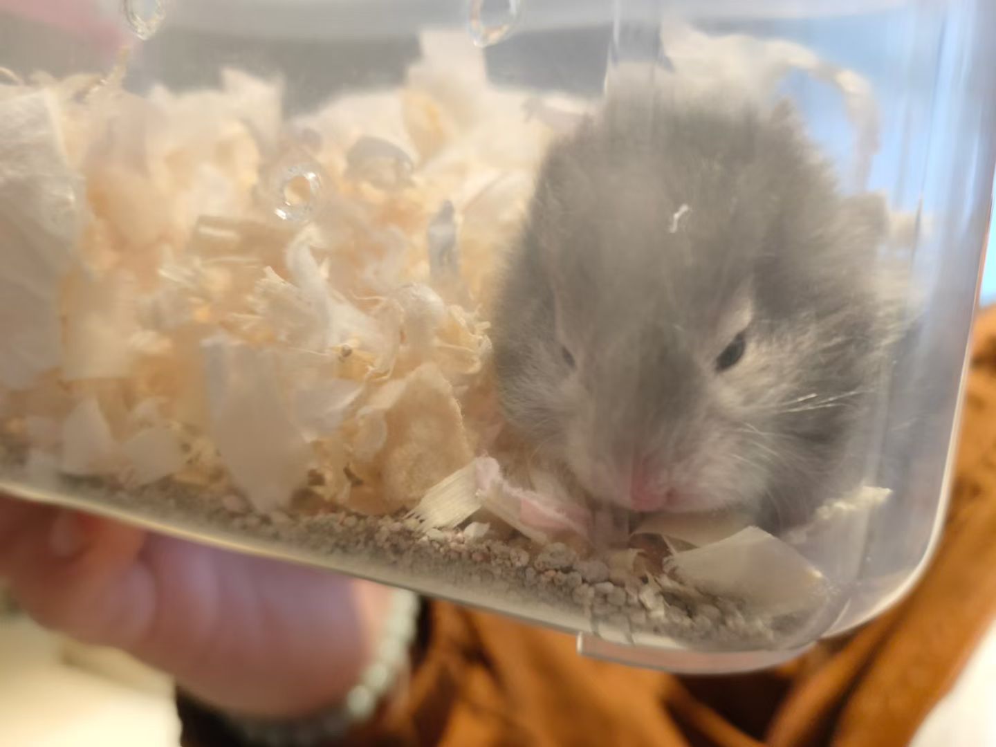 我们找商家要了她养仓鼠的同款垫料尿沙什么的,照着来应该不会出太大问题,刚买回来的那天就下单了,估计周三周四才能到 |